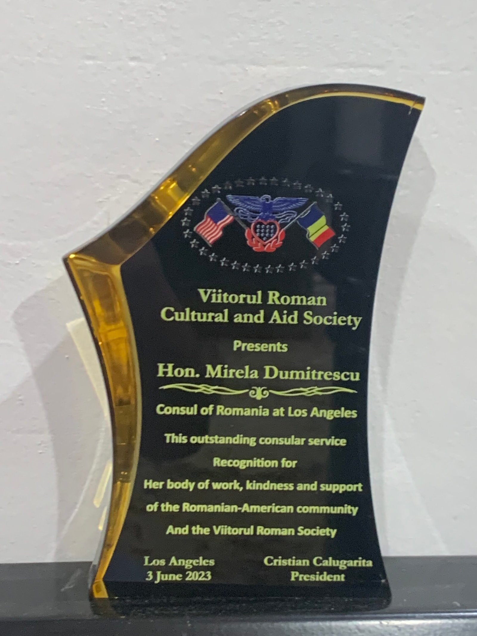 Un moment marcant al serii a constat în înmânarea unei plachete omagiale Consulului General cit și în acordarea unui premiu special doamnei Consul din partea președintelui Societății Viitorul Român. Aceste gesturi au reflectat recunoașterea și respectul pentru eforturile lor constante în sprijinirea relațiilor internaționale și în promovarea culturii românești.